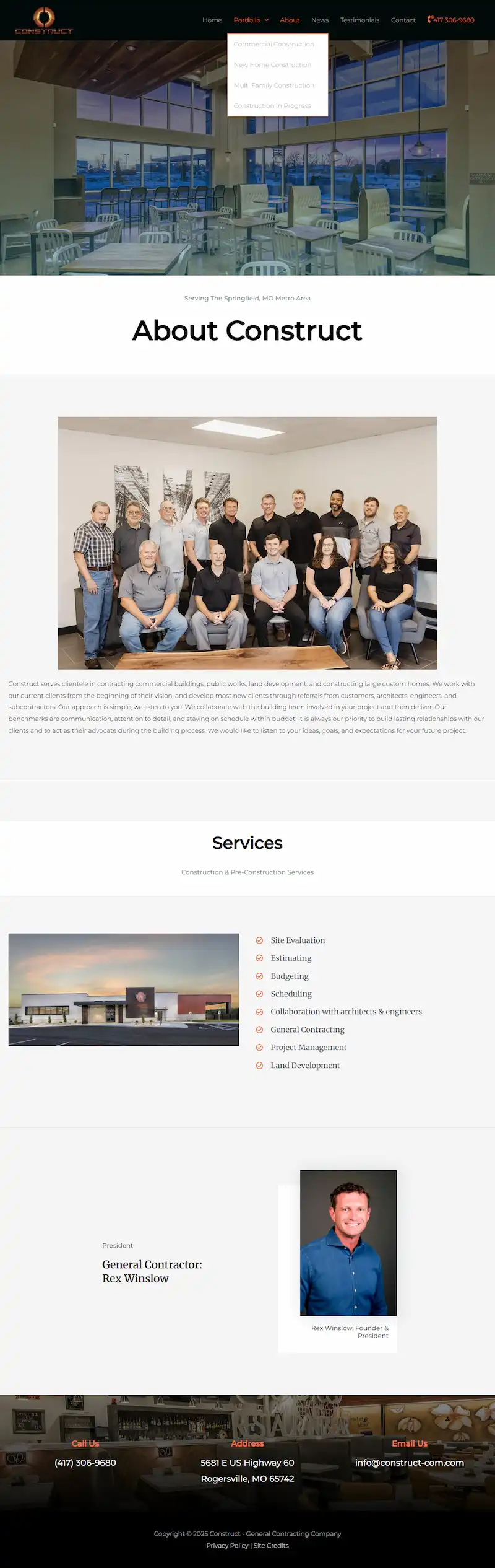 Construct’s primary focus is commercial construction, but they have also built many large custom homes. Their services include everything from site evaluation to estimating, project management, and land development. A new website was needed to showcase their work. Time constraints required the project to be completed in just 3 weeks.