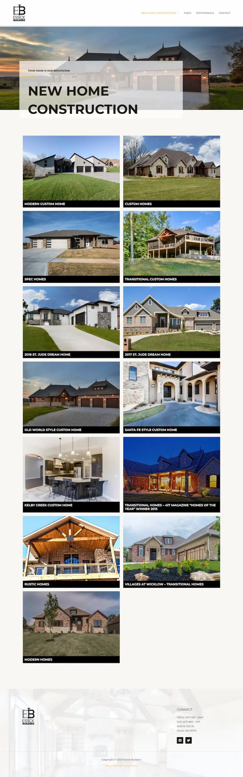 Essick Builders specializes in building custom homes in the Springfield, MO area. Owner Dusty Essick has more than 15 years of experience in the construction industry. With a reputation for excellence and integrity, they needed a website to match – one that could seamlessly communicate these values.