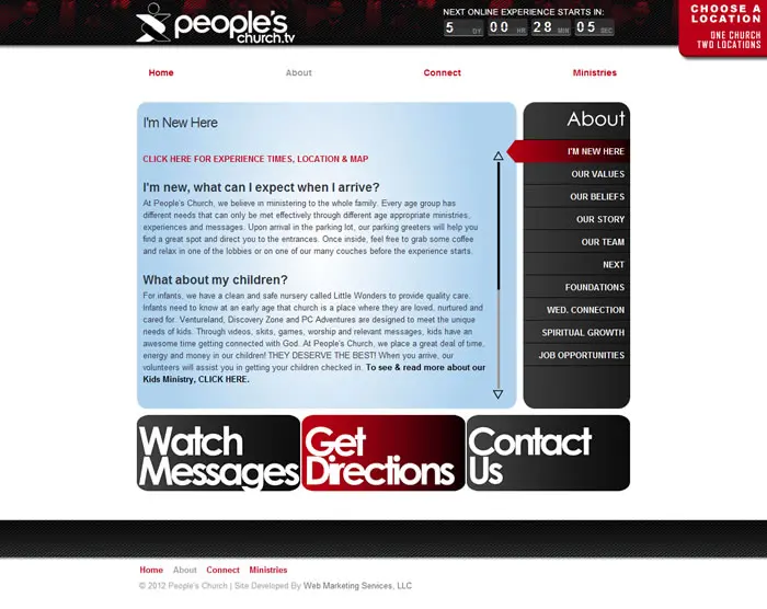 Web Marketing Services, LLC had the privilege of working with People’s Church on the development of several web sites including its very first in 2002. The church has been included in Outreach magazine’s list of fastest growing churches in the country.