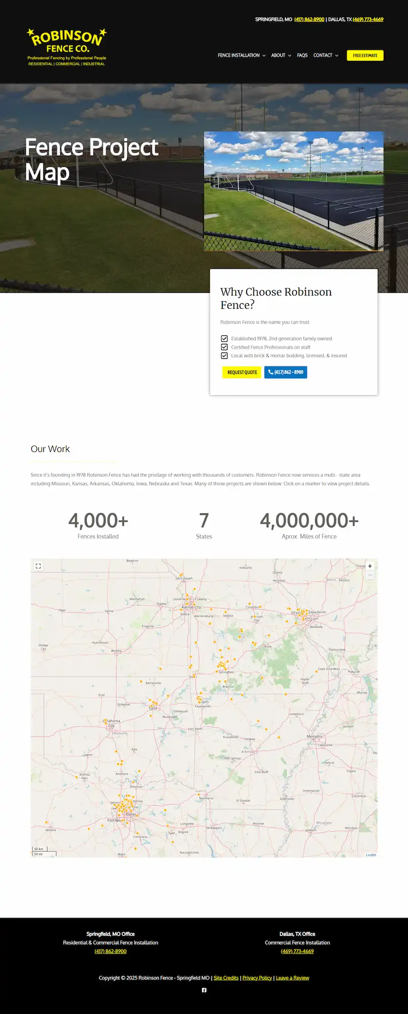 The Robinson family has been associated with the fence industry since 1968, when the founder of Robinson Fence, Ray Robinson, was hired as a residential fence salesman for a local company. Robinson Fence was a mostly local fence contractor up until the late 1990s. In the early 2000s, Robinson Fence turned its focus more to the commercial and industrial fence markets. Today Robinson Fence services a five state area (Missouri, Kansas, Arkansas, Oklahoma, and Texas). WMS has been privilaged to partner with Robinson since 2013.